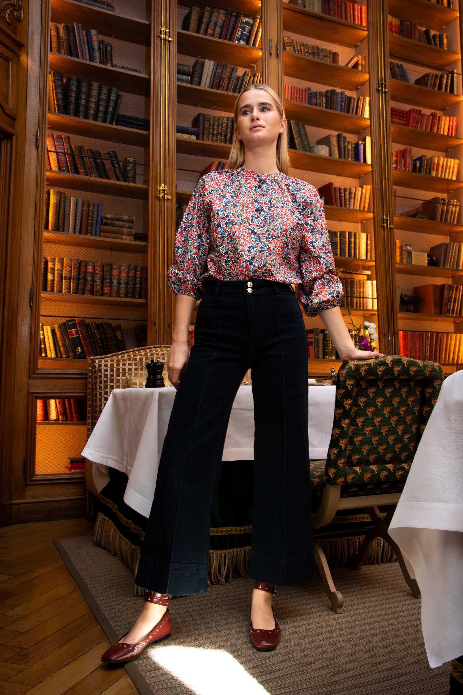 Una blusa con un «french touch», casual y llena de estilo. Con manga ranglan y pequeñas pinzas rodeando todo el cuello, es una prenda muy fácil de llevar en looks de estilo casual cuidado. Cómoda y con un colorido luminoso con un estampado de flores en rojos y azules sobre base blanca. Ideal sobre jeans.