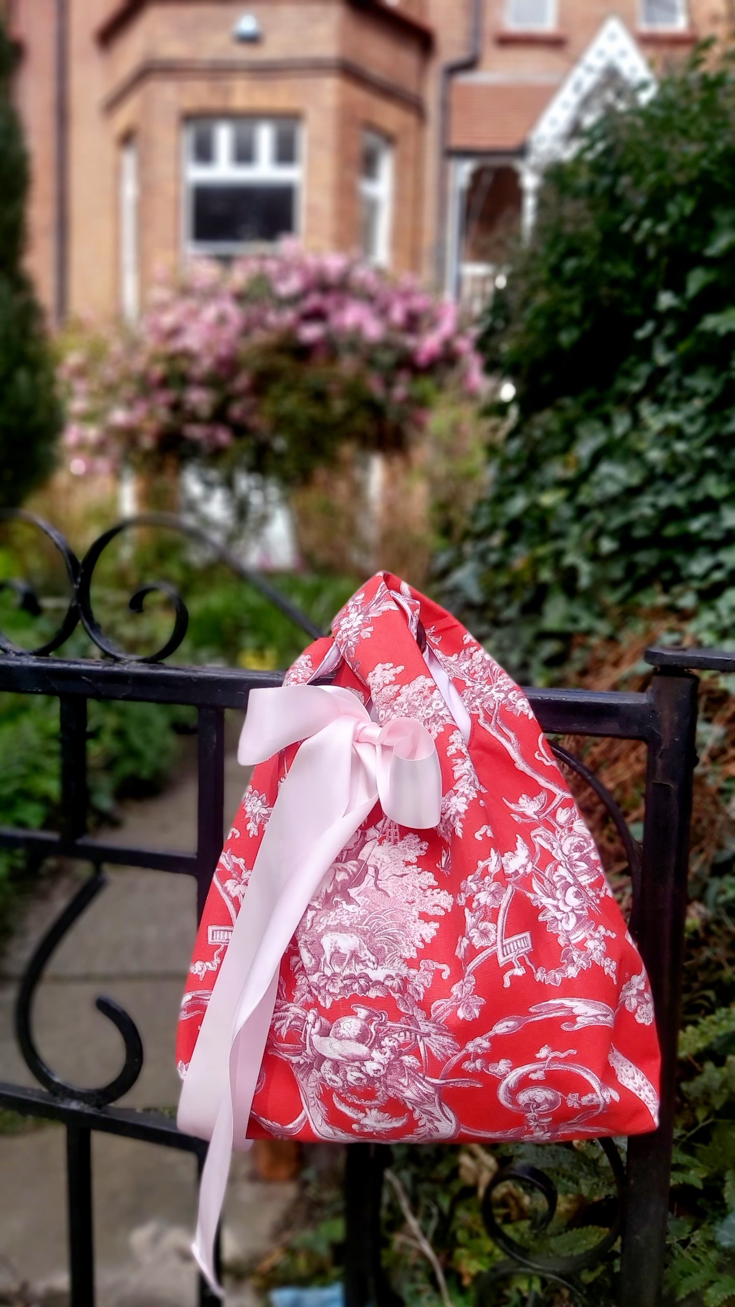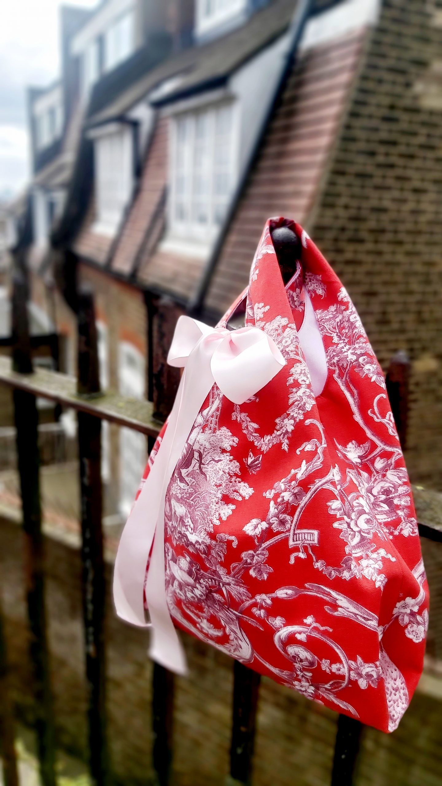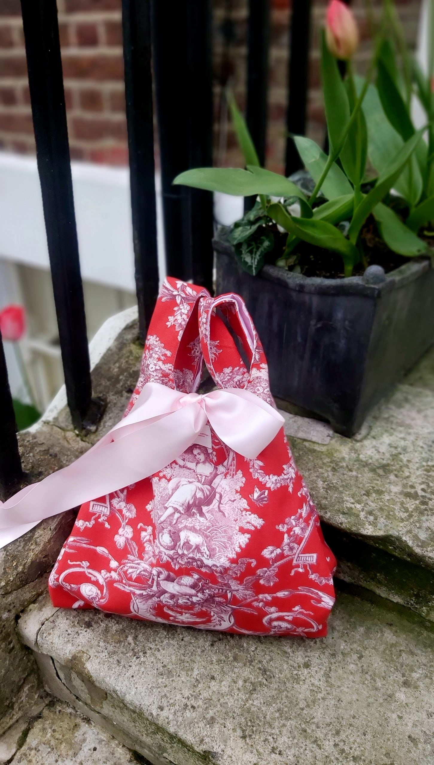 Nuestro bolso en toile de jouy, en un rojo bermellón combinado con rosa blush. Con un aire romántico y muy francés, presenta una escena galante de dama en el columpio rodeada de querubines y vegetación, muy del gusto del siglo XVIII. El bolso va forrado en una loneta de algodón en rosa muy suave, con dos bolsillos interiores para guardar el móvil, las llaves y lo que necesites más a mano.